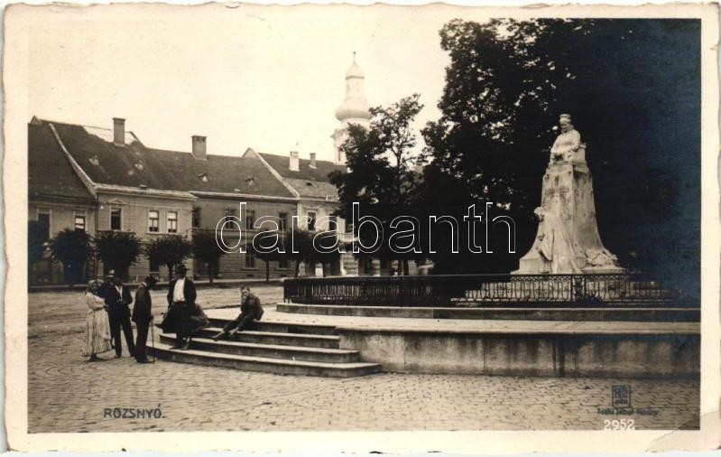 Rozsnyó, Roznava; Fő tér, utcakép, Franciska szobor, Fuchs József kiadása / main square, street view, statue (EK)