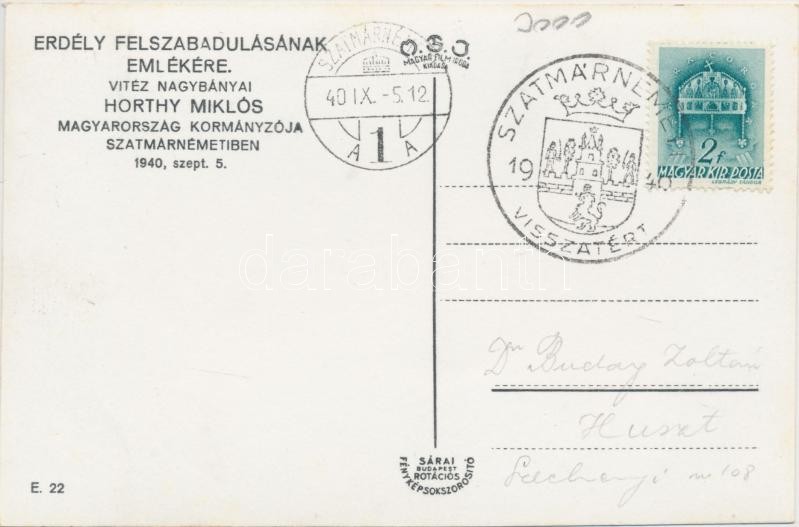 1940 Szatmárnémeti, Satu Mare; bevonulás, Horthy Miklós, Teleki Pál, Hóman Bálint / entry of the Hungarian troops 'vissza' So. Stpl