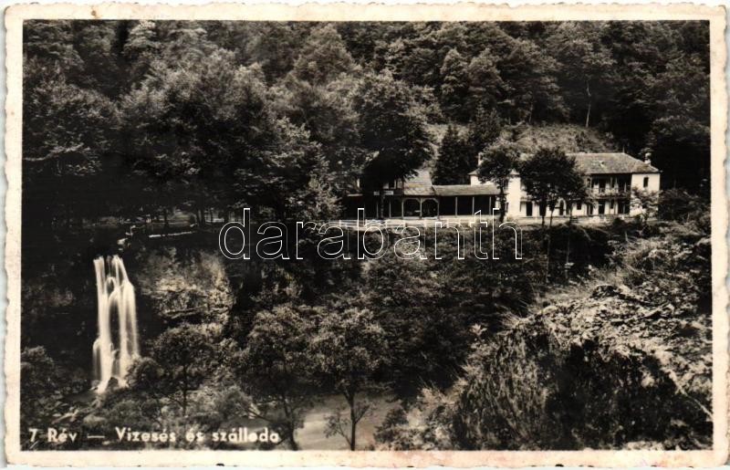 Rév, Vad; Vízesés és szálloda, Zichy-barlang EKE menedékház / waterfal...