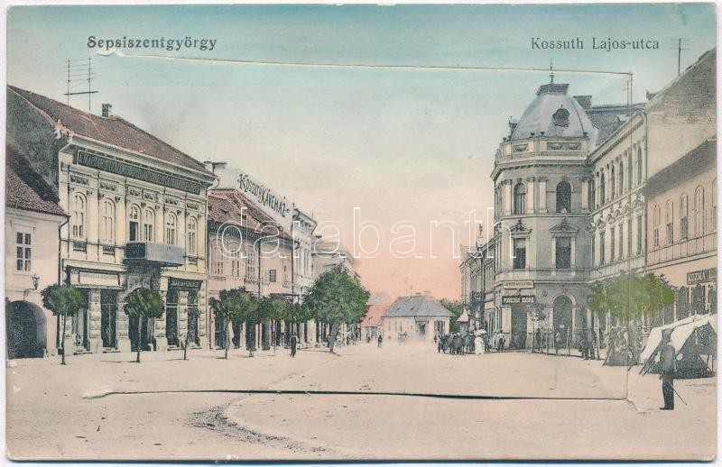 Sepsiszentgyörgy, Sfantu Gheorghe; Kossuth Lajos utca, A Magyar jelzál... https://www.darabanth.com/en/299-Online-auction/299.0/Postcards/Transylvania~500008/Sepsiszentgyorgy-Sfantu-Gheorghe-Kossuth-Lajos-utca-A-Magyar-jelzaloghitelbank-szekelyfoldi-k~II1599668