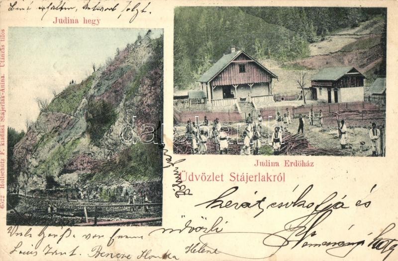 Stájerlak, Steierdorf, Kirscha; Judina hegy és erdőház. Hollschütz F. ...