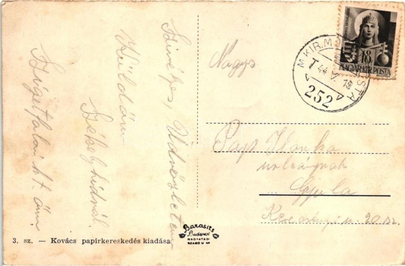 Székelyhíd, Sacueni; látkép, Hősök szobra, Országzászló, Gróf Studenberg kastély, Járásbíróság, Adóhivatal, Kovács kiadása / general view, Heores' monument, Hungarian flag, castle, court, tax office (EK)