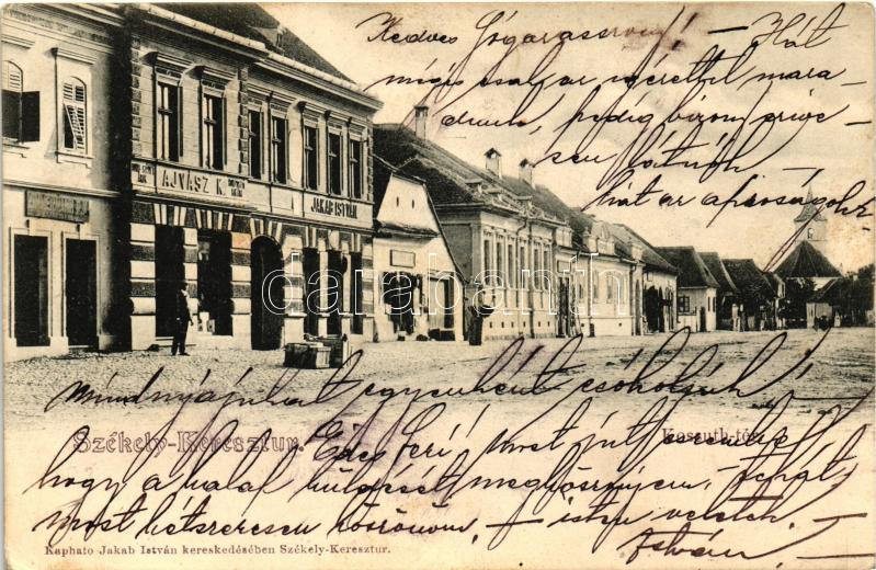 Székelykeresztúr, Kossuth tér, Ajvász K., Zimmermann és Jakab István üzlete / square, shops