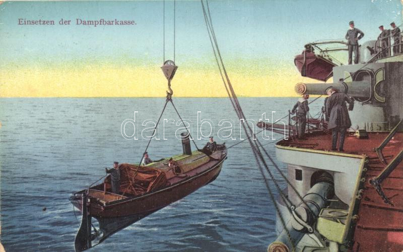 Einsetzen der Dampfbarkasse / Austro-Hungarian Navy, K.u.K. Kriegsmari...