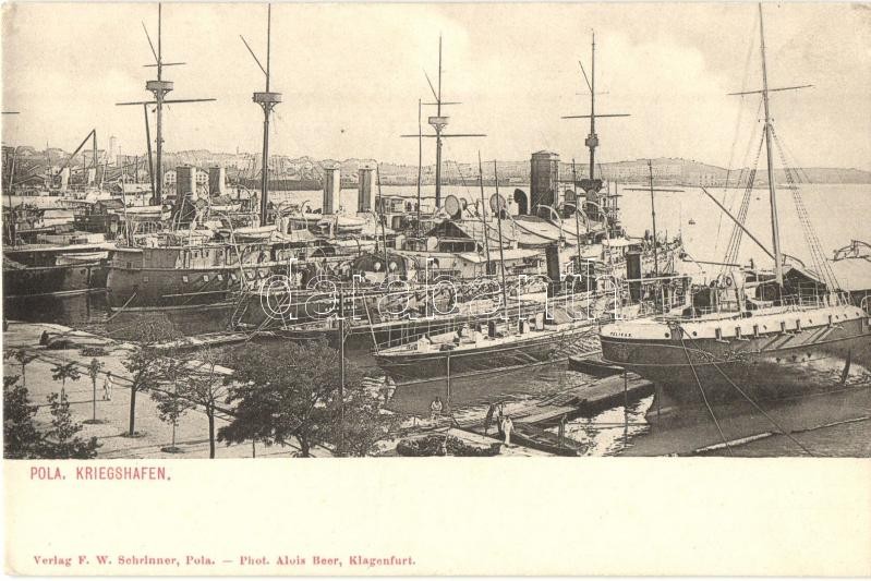Pola, Kriegshafen / Osztrák-magyar hadihajók a hadi kikötőben, Verlag ... https://www.darabanth.com/en/299-Online-auction/299.0/Postcards/Warships~500069/Pola-Kriegshafen-Osztrak-magyar-hadihajok-a-hadi-kikotoben-Verlag-F-W-Schrinner-Phot-Alo~II1602248