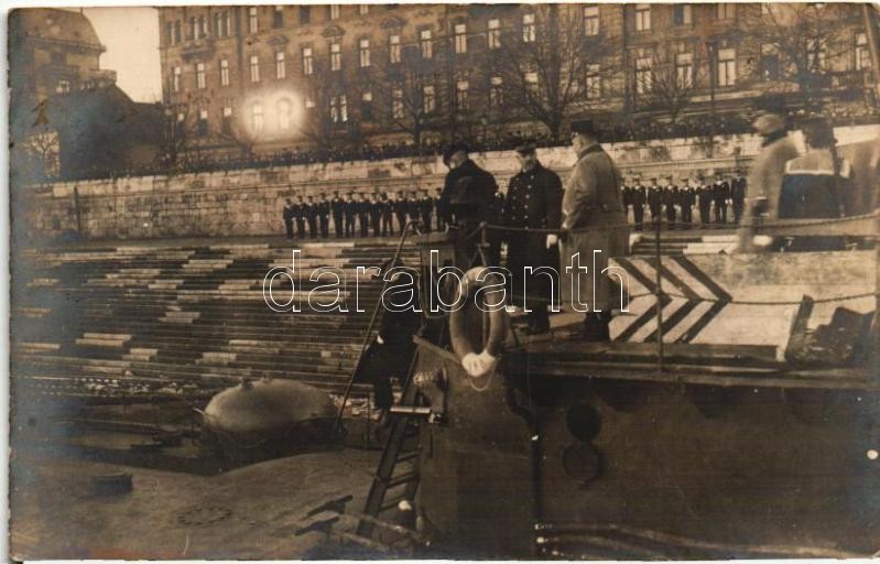 Description: SMS Inn (Ex Basarabia) K.u.K. Haditengerészet monitor típusú hadihajója, felséglátogatás. Dunai Flottilla / Donau-Flottille / royal visitation of the SMS Inn river guard ship, photo