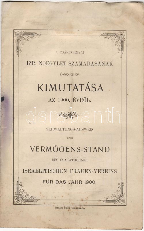 https://www.darabanth.com/en/3-Major-auction/3.1/Art-and-collectibles/~907/1900-A-Csaktornyai-izr-Noegylet-kimuatatasa-Bilanz-der-Csaktornyaer-izr-Freuvereins~II67747