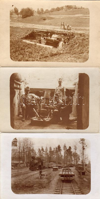 152 db első világháborús amatőr frontfotó képeslap albumban, nagyrészt tábori postával az orosz frontról Szegedre küldve. Érdekes jelenetek, táborí vasút, lezuhant repülőgép, ágyúk, fegyverek, magyar és német csapatok, élet a lövészárokban, stb. Rendkívül érdekes, egyedi tétel! / 152 versch. Amateur Frontfoto Karten aus Russland, teils mit Feldpost nach Szeged geschickt. Interess. Szenen, Feldbahn, Flugzeug, Kanonen, Waffen, ungarische und deutsche Truppen, Leben in Schützengraben, usw., bitte besichtigen!