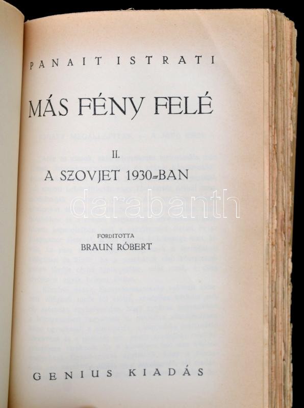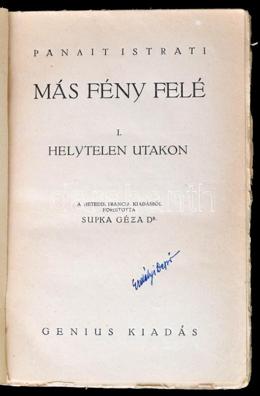 Panait Istrati: Más fény felé. I. Helytelen utakon. Fordította: Dr. Su... https://www.darabanth.com/en/30-Major-auction/30.1/Books/Books-History~12155/Panait-Istrati-Mas-feny-fele-I-Helytelen-utakon-Forditotta-Dr-Supka-Geza-II-A-Szovjet-1~II1834629