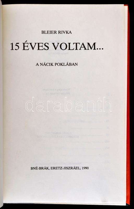 Bleier Rivka: 15 éves voltam... A nácik poklában. Bné-Brák, 1990, Szerzői kiadás, (Lipe Friedman-ny.) Izraeli magyar nyelvű kiadvány. Kiadói kartonált papírkötés. Ritka!