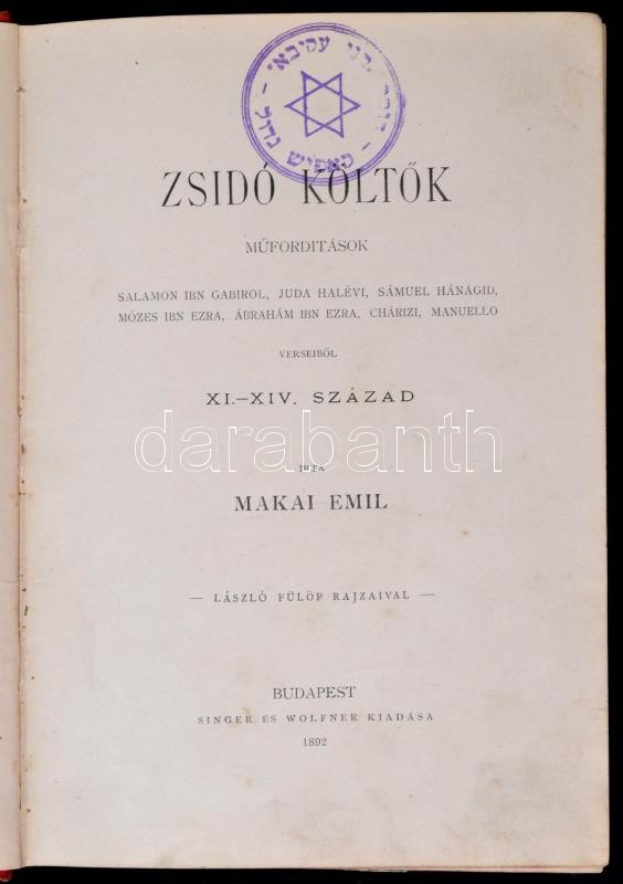 Makai Emil Zsidó költők. Műfordítások Salamon ibn Gabirol, Juda Halévi... https://www.darabanth.com/en/30-Major-auction/30.1/Books/Books-Judaica~12165/Makai-Emil-Zsido-koltok-Muforditasok-Salamon-ibn-Gabirol-Juda-Halevi-Samuel-Hanagid-MC3~II1854825