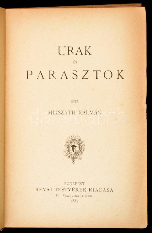 Mikszáth Kálmán: Urak és parasztok. Bp.,1885, Révai, 194+2 p. Első kia... https://www.darabanth.com/en/30-Major-auction/30.1/Books/Books-Other-rarities~12169/Mikszath-Kalman-Urak-es-parasztok-Bp-1885-Revai-194plus2-p-Elso-kiadas-Kiadoi-aranyozott~II1832221