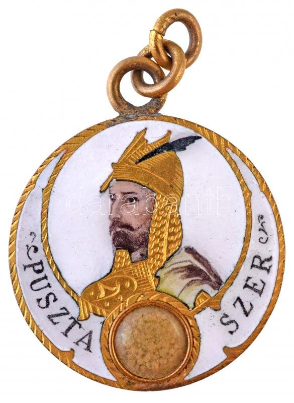 Description: 1896. "Pusztaszer / Ezredéves Kiállítás" zománcozott és aranyozott medál füllel, benne ópusztaszeri föld (20mm) T:1-