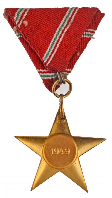 Description: 1949. "A Magyar Népköztársasági Érdemérem arany fokozata" zománcozott aranyozott bronz kitüntetés mellszalaggal T:2 / Hungary 1949. "Medal of Merit of the Hungarian Peoples Republic Gold class" enamelled gilt Br decoration on ribbon C:XF