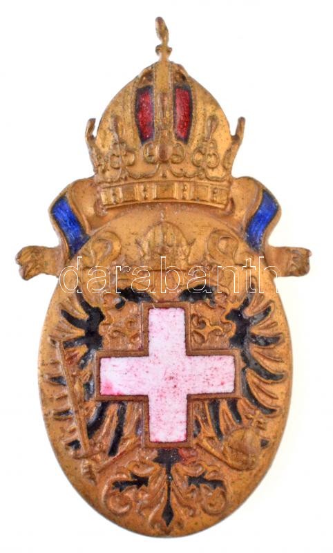 Description: Ausztria ~1900. Aranyozott és részben zománcozott jelvény osztrák császári koronával és kétfejű sassal (17x29mm) T:2 /