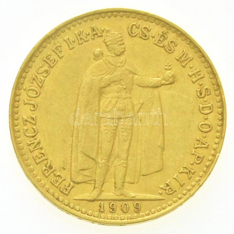 https://www.darabanth.com/en/30-Major-auction/30.1/Numismatics/Gold-coins-and-commemorative-medallions~12140/1909KB-10K-Au-Ferenc-Jozsef-3-38g0900-T2-ph-Hungary-1909KB-10-Korona-Au-Franz-Joseph-I~II1850147