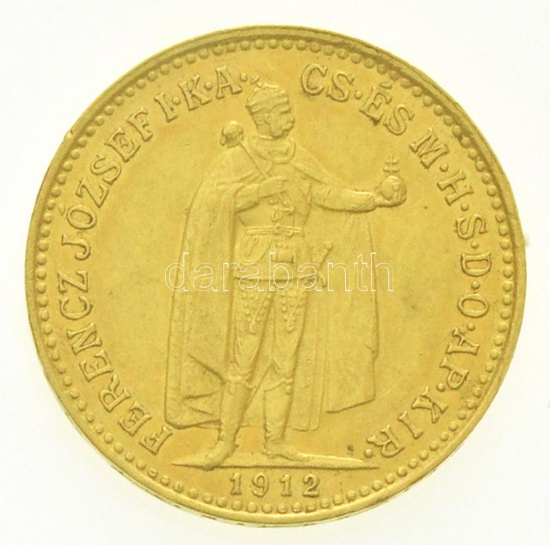1912KB 10K Au "Ferenc József" (3,39g/0.900) T:2 kis patina, ... https://www.darabanth.com/en/30-Major-auction/30.1/Numismatics/Gold-coins-and-commemorative-medallions~12140/1912KB-10K-Au-Ferenc-Jozsef-3-39g0900-T2-kis-patina-ph--Hungary-1912KB-10-Korona-Au-Fra~II1849216