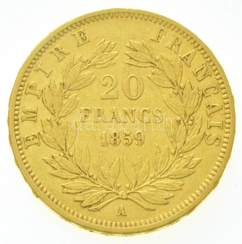 Franciaország / Második Császárság 1859A 20Fr Au "III. Napóleon&q... https://www.darabanth.com/en/30-Major-auction/30.1/Numismatics/Gold-coins-and-commemorative-medallions~12140/Franciaorszag-Masodik-Csaszarsag-1859A-20Fr-Au-III-Napoleon-6-44g0900-T2-2-kis-ph-~II1853923