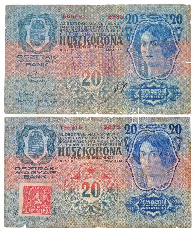 1913. 20K "Nagykárolyfalva" felülbélyegzéssel + 1913. 20K cs...