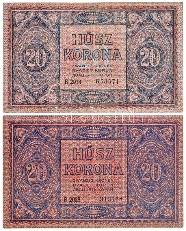 Description: 1919. augusztus 9. 20K (2x) egyik színhiányos T:II-,III szép papír