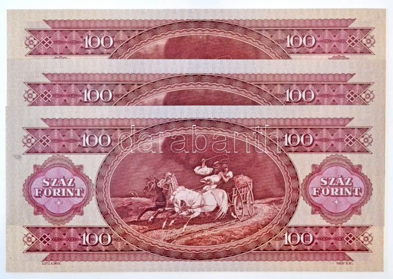 1989. 100Ft (3x) sorszámkövetők "B545 029626 - B545 029628" ...