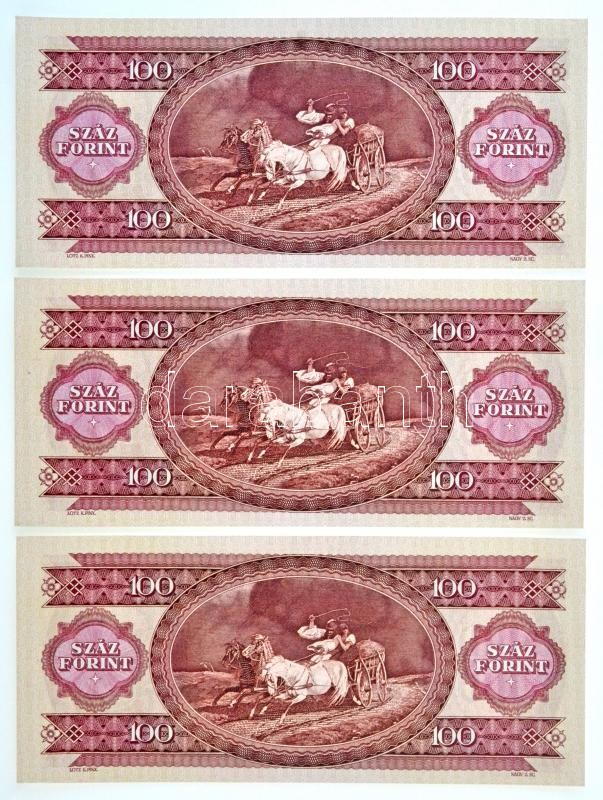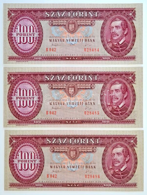 1993. 100Ft (3x) sorszámkövetők, "B042 028484 - B042 028486" T:I / Hungary 1993. 100 Forint (3x) sequential serials, "B042 028484 - B042 028486" C:UNC