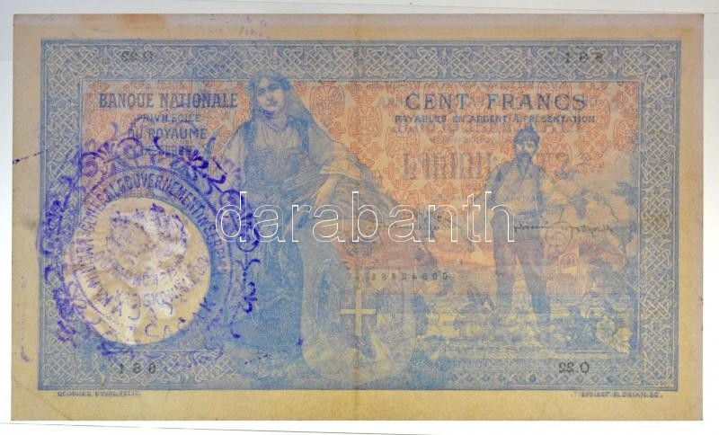 Szerbia 1905. 100D "681 0.22" sorszámmal, papír vízjeles rés... https://www.darabanth.com/en/30-Major-auction/30.1/Numismatics/Hungarian-and-foreign-banknotes~12141/Szerbia-1905-100D-681-022-sorszammal-papir-vizjeles-reszen-KuK-Militar-Generalgouverneme~II1784734