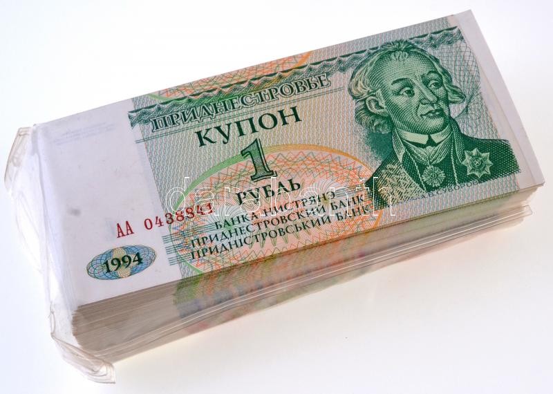 Transznisztria 1994. 1R (98x) mind "AA" sorozat, sorszámkövetők (29+21+46+2) + 5R (95x) mind "AB" sorozat, sorszámkövetők (39+11+16+8+17+4) + 10R (97x) mind "AA" sorozat, egy kivételével sorszámkövetők (50+29+17) T:I,I- / Transnistria 1994. 1 Ruble (98x) all "AA" series, sequential serials (29+21+46+2) + 5 Rubles (95x) all "AB" series, sequential serials (39+11+16+8+17+4) + 10 Rubles (97x) all "AA" series, sequential serials all except one (50+29+17) C:UNC,AU Krause 16; 17; 18.