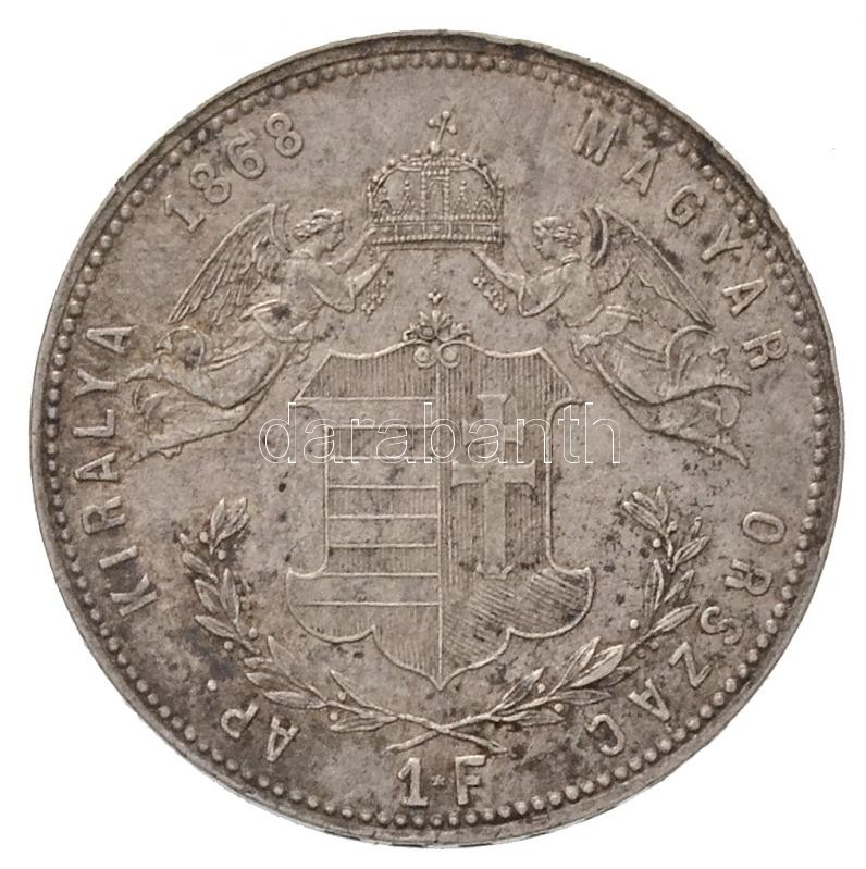 1868GYF 1Ft Ag "Ferenc József / Angyalos címer" Gyulafehérvár (12,35g) T:2 patina, kis ph. / Hungary 1868GYF 1 Forint Ag "Franz Joseph I" Alba Iulia (12,35g) C:XF patina, small edge error