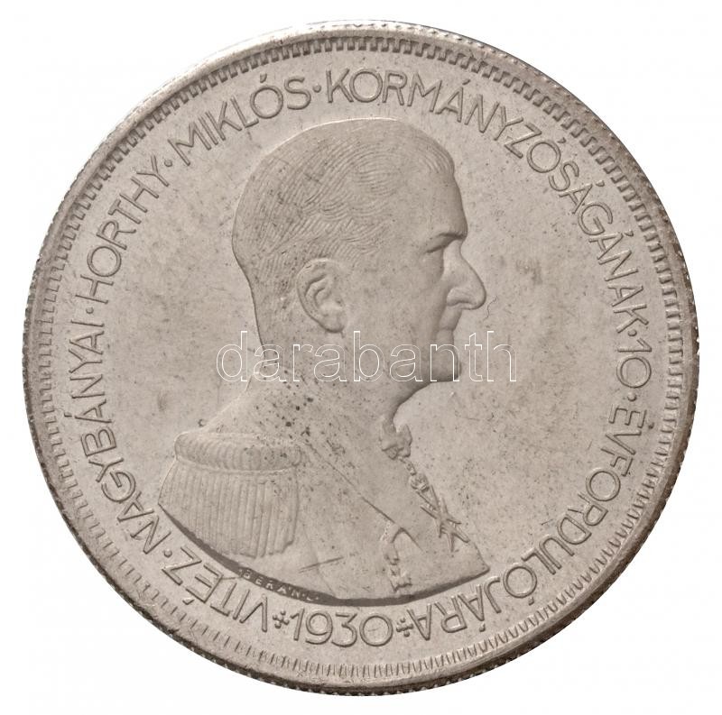 https://www.darabanth.com/en/30-Major-auction/30.1/Numismatics/Hungarian-coins-and-coins-with-Hungarian-mint-marks~12142/1930-5P-Ag-Horthy-jobbra-Artex-veret-UPjelolessel-TP-Hungary-1930-5-Pengo-Ag-Horthy-Ar~II1858503