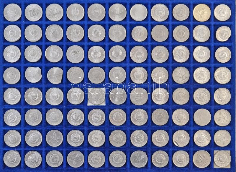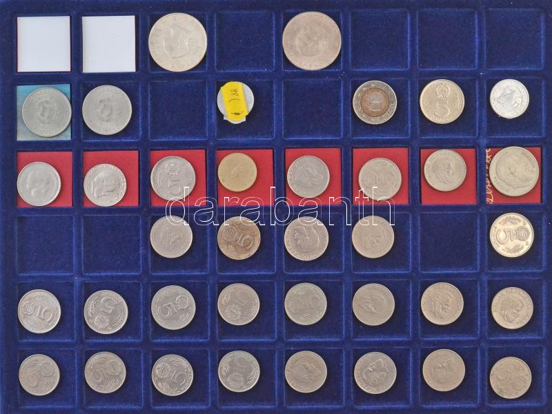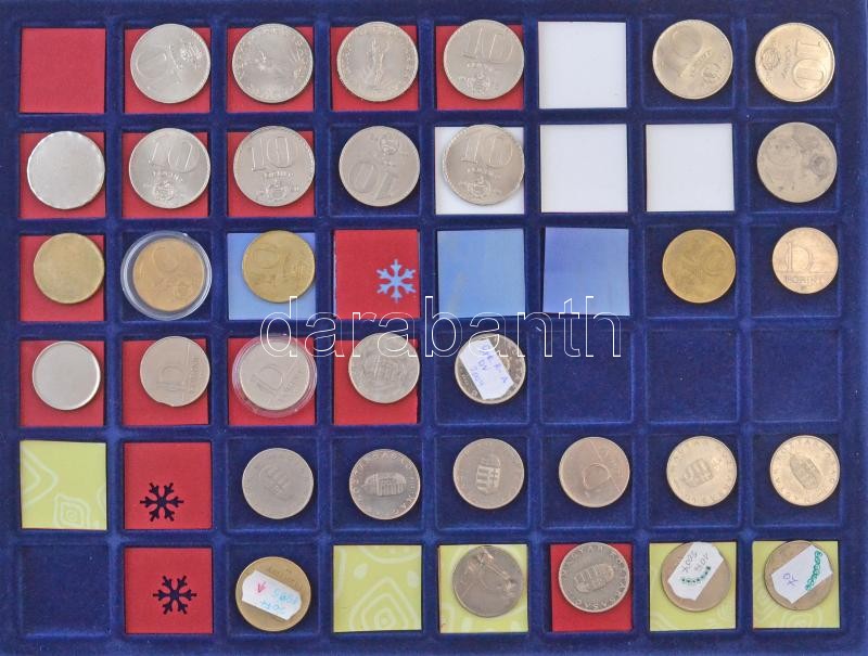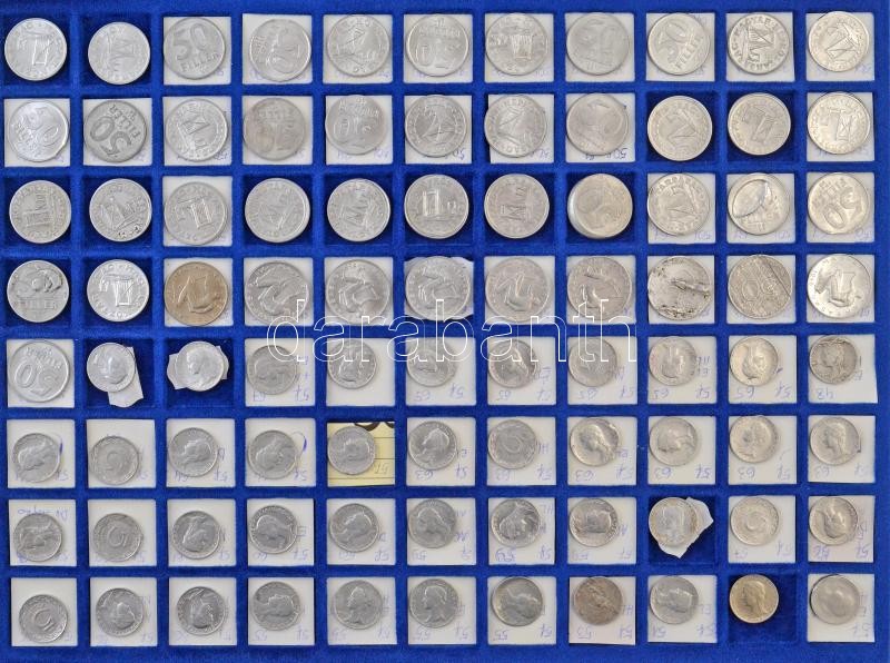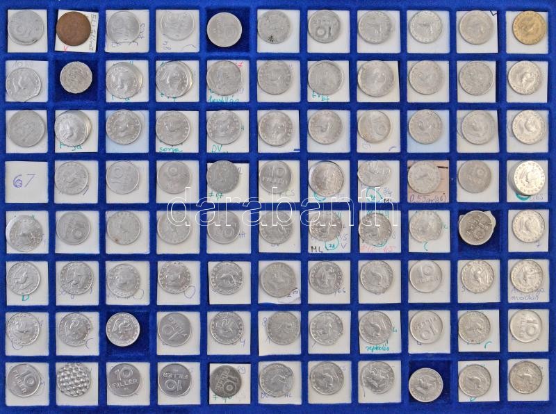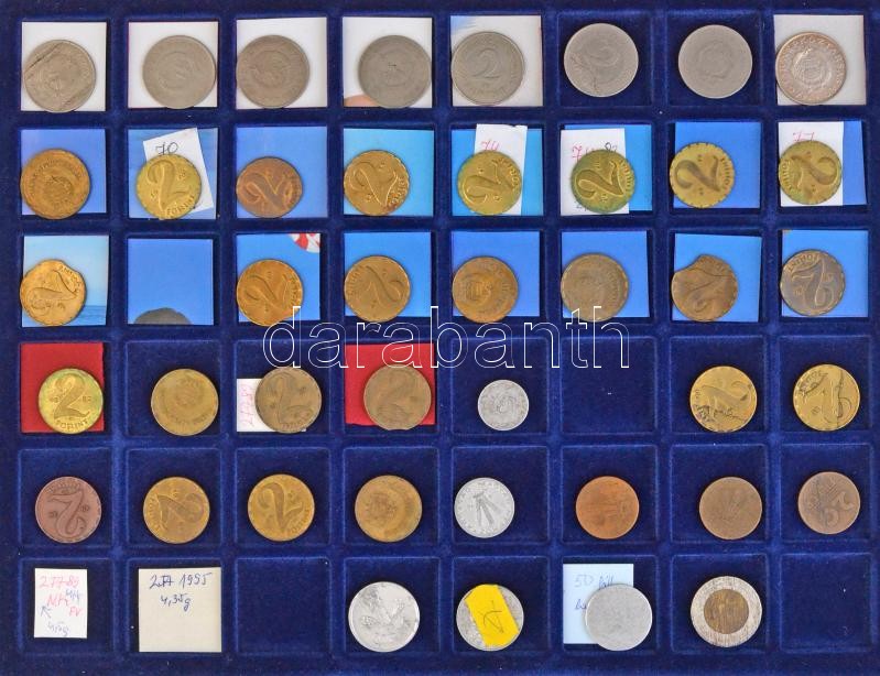 1946-2009(?) Rendkívül tartalmas forint-fillér gyűjtemény technológiai és verdehibás érmékből 2f-től a 200Ft-os címletekig bezárólag. Többek között lapkahibás, félrevert, kicsípett érmék, egyoldalas- és duplaveretek, látványos elő- és hátlapi eltolódások. 9db tálcán szépen rendezett anyag, az érmék jelentős része feliratozva a hibák megjelölésével, alumínium kofferban. Minden tálcáról külön kép! Izgalmas gyűjtői anyag, érdemes megtekinteni! / Hungary 1946-2009(?) Incerdibly rich Forint-Fillér lot with strike and technologic error strikes from the 2 Fillér to the 200 Forint value coins. Among them plantchet errors, misstrikes, gouges, one sided and double strikes, spectacular front and reverse shifts. On nine trays, well organized, mostly labeled with the errors in Aluminium case. Pictures about every tray! Interesting Collector Material. Well worth seeing!