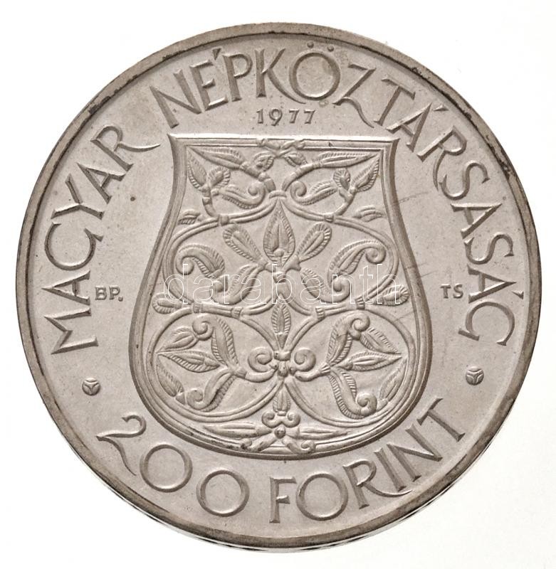/ Hungary 1977. 200 Forint Ag "Hungarian National Museum / Sabretache" marked trial strike plan, "PRÓBAVERET" mark on reverse below C:BU corrosion, small patina