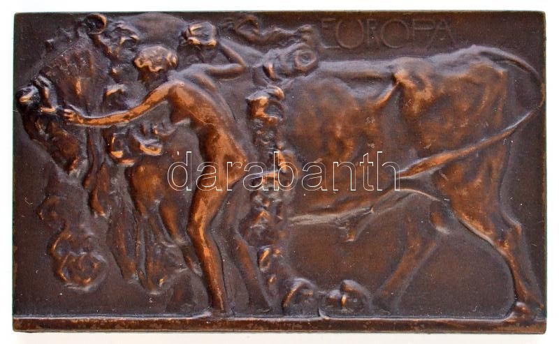 Franges-Mihanovic Róbert (1872-1940) 1907. "Európa" egyoldalas Br plakett, Éremkedvelők Egyesületének tagsági érme, peremén "ÉKE 1907", sorszámozott, 5-ös sorszámmal (74,5g/42x70,5mm) T:2 / Hungary 1907. "Europa" one-sided Br plaque, membership medal of the Association of Medal Enthusiasts, with "ÉKE 1907" and serial number "5" on edge Sign: Robert Franges-Mihanovic (74,5g/42x70,5mm) C:XF HP.: 2302