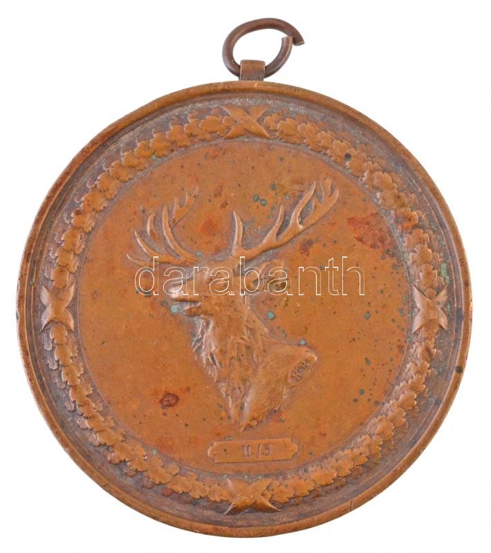/ Hungary 1941. "Nemzeti Vadászati Védegylet - Agancs kiállítás Budapest (National Hunters Protection Society - Antler exhibition Budapest)" Br award medal with ear. Sign.: Károly Gerl (169g/68mm) C:VF patina, edge error