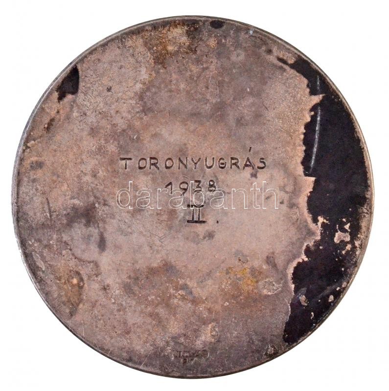 Göröntsér Greff Lajos (1888-1976) 1920. "Magyar Úszó-Szövetség Bajnoki Érme / Toronyugrás 1938 II." jelzett Ag díjérem, hátoldalon "LUDVIG BP" gyártói jelzéssel (54,71g/0.800/50mm) T:2 patina-