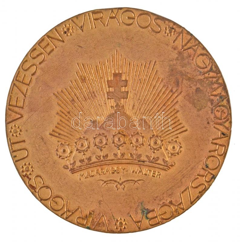 Madarassy Walter (1909-1994) 1930. "Virágos Budapest Virágos Magyarország Jutalomérme / Virágos út vezessen virágos Nagymagyarországba" aranyozott Br emlékérem (72,07g/60mm) T:2,2- ph., aranyozás kopott