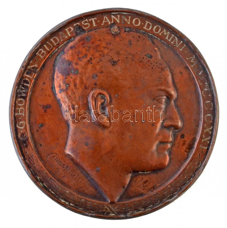 / Hungary 1921. "C.G. Bowden látogatása Budapesten / Budapest szegényeinek fáradhatatlan támogatója (Visitation of C.G. Bowden in Budapest / Unwavering patron of penniless of Budapest)" Br commemorative medal. "C.G. BOWDEN BUDAPEST ANNO DOMINI MDCCCCXXI" Sign.: Jenő Martinelli (150g/83mm) C:XF,VF stain