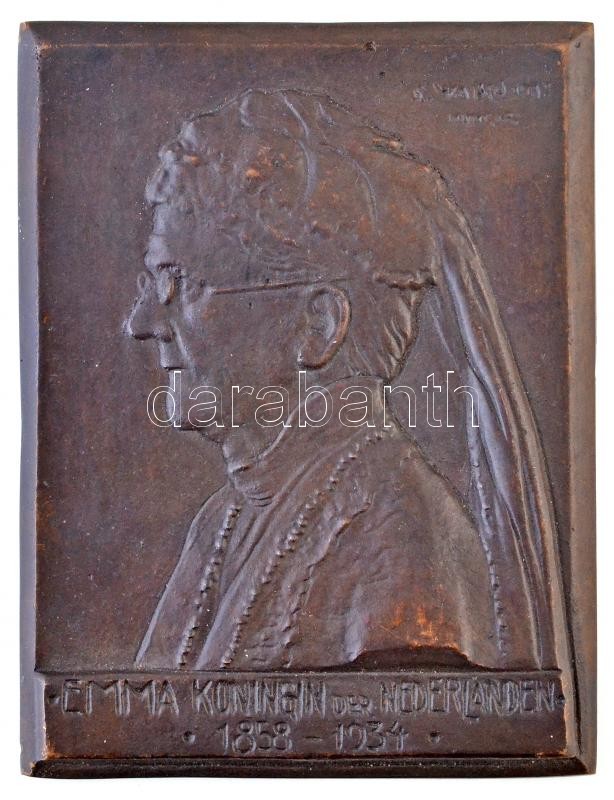 Solymári Valkó László (1909-1984) 1934. "Emma, Hollandia királynéja 1858-1934" Br plakett. "EMMA KONINGIN DER NEDERLANDEN 1858-1934" (379g/106x89mm) T:2 / Hungary 1934. "Emma Koningin der Nederlanden 1858-1934 (Emma Queen of Netherlands 1858-1934)" Br plaque. Sign.: László Solymári Valkó (379g/106x89mm) C:XF