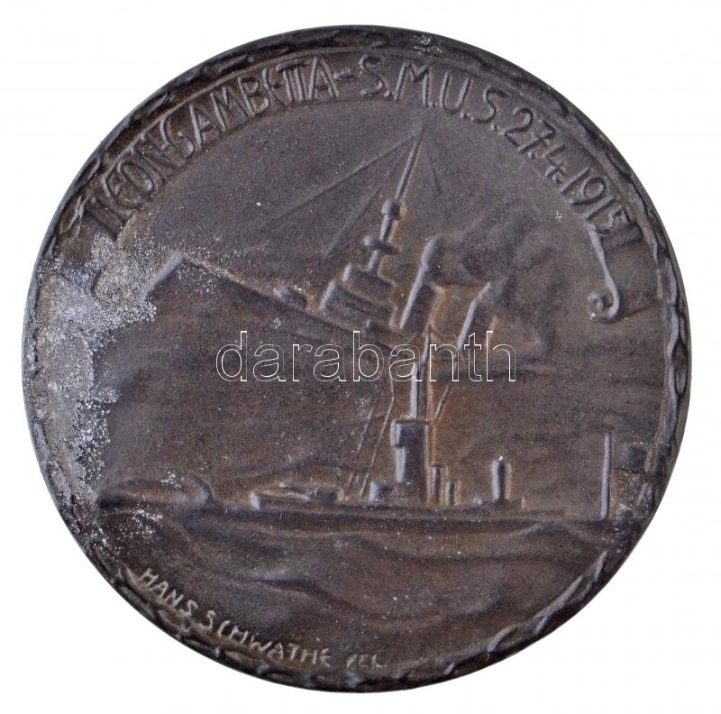 / Austro-Hungarian Monarchy 1915. "Leon-Gambetta - S.M.U.S.5.27.4.1915 / Rotes Kreuz Kriegshilfsbüro Kriegsfürsorge Amt 1914-1915" Zn commemorative medallion. Sign.: Hans Schwathe (31,76g/45mm) C:XF oxidation