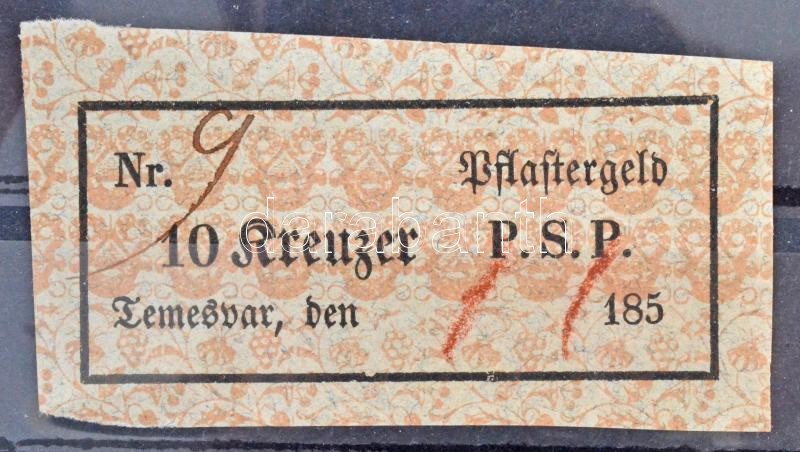 Erdély / Temesvár 1850-1860. "Pflastergeld (Útadó)" 10 krajcárról, "P.S.P." T:II / Transsylvania / Timisoara 1850-1860. "Pflastergeld (Pavement Tax)" about 10 Kreuzer "P.S.P." C:XF