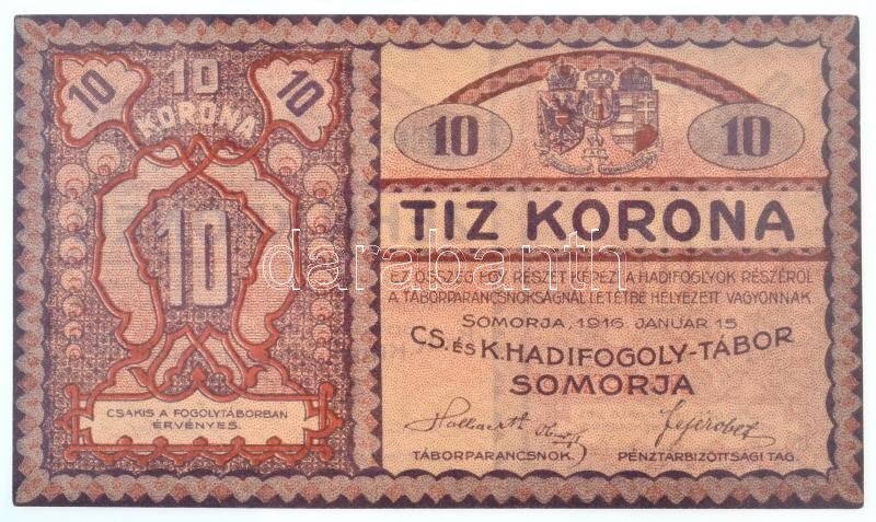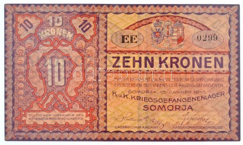 Description: Somorja / hadifogolytábor 1916. január 15. 10K két nagybetűs sorozatszám, arab sorszám ("EE 0299") T:II
