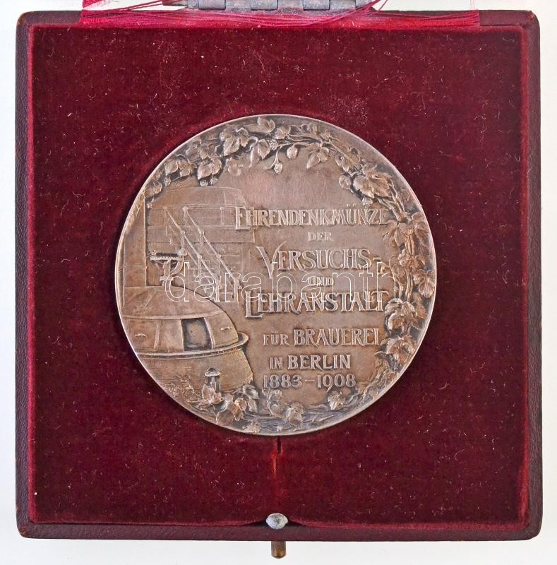 Német Birodalom 1908. "Ehrendenkmünze der Versuchs- und Lehranstalt für Brauerei in Berlin 1883-1908 (A sörfőzdei oktatásért és kutatásért emlékdíjérem, Berlin 1883-1908)" kétoldalas Ag emlékérem, fémjel nélkül, "OERTEL BERLIN" gyártói jelzéssel, eredeti tokban. Szign.: R. Felderhoff (101,50g/60mm) T:1-,2 / German Empire 1908. "Ehrendenkmünze der Versuchs- und Lehranstalt für Brauerei in Berlin 1883-1908" double-sided Ag commemorative medallion, without hallmark, with "OERTEL BERLIN" maker's mark, in original case. Sign.: R. Felderhoff (101,50g/60mm) C:AU,XF