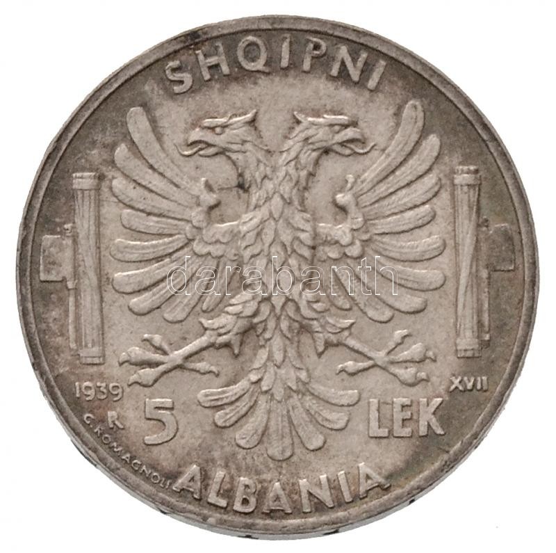 Albánia / Olasz megszállás 1939R 5L Ag "III. Viktor Emánuel"... https://www.darabanth.com/en/30-Major-auction/30.1/Numismatics/Worldwide-silver-and-metal-coins~12145/Albania-Olasz-megszallas-1939R-5L-Ag-III-Viktor-Emanuel-T1-2-patina-Albania-Italian-O~II1840812
