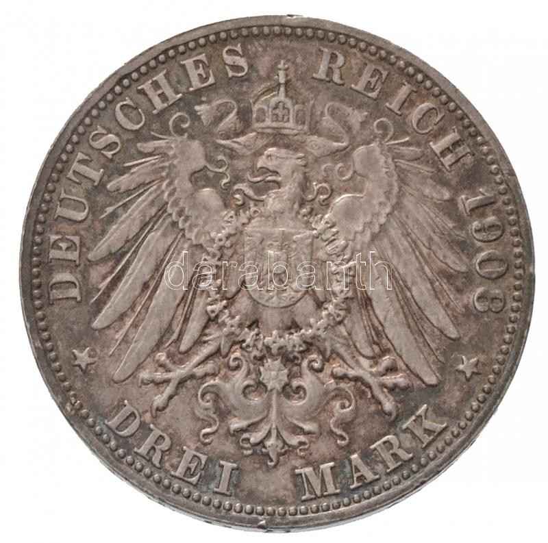Német Államok / Bajorország 1908D 3M Ag "Ottó" (16,70g) T:2 ... https://www.darabanth.com/en/30-Major-auction/30.1/Numismatics/Worldwide-silver-and-metal-coins~12145/Nemet-Allamok-Bajororszag-1908D-3M-Ag-Otto-16-70g-T2-patina-kis-ph-German-States-Ba~II1847281