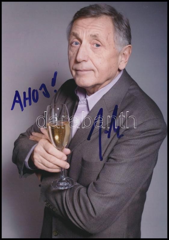 Jíri Menzel (1938-) filmrendező aláírása egy őt ábrázoló fotón