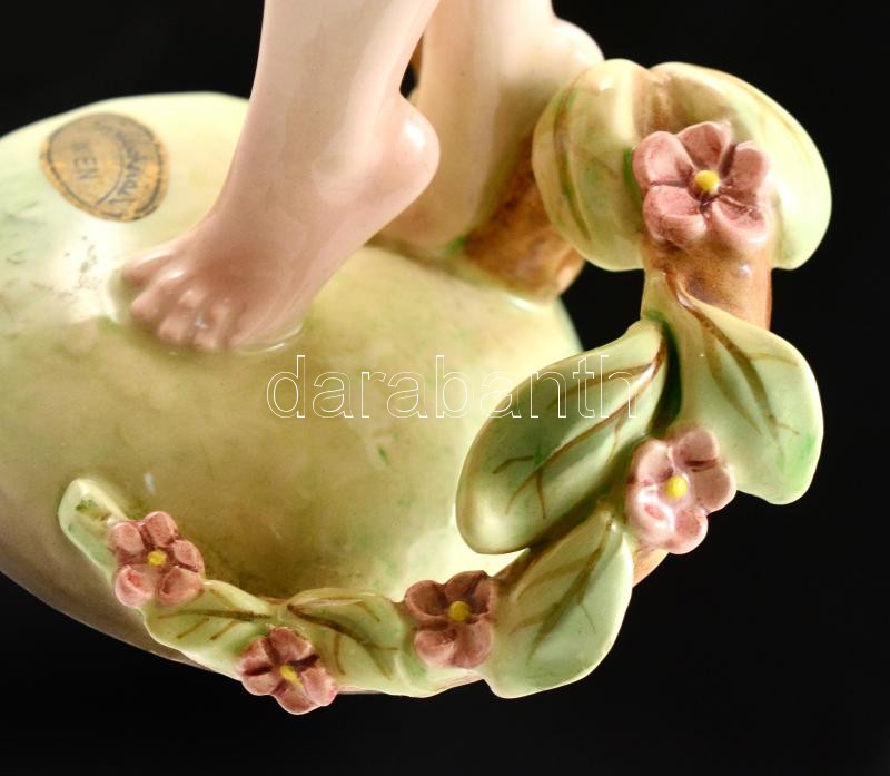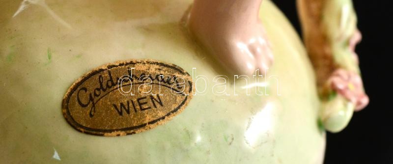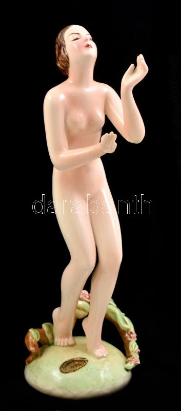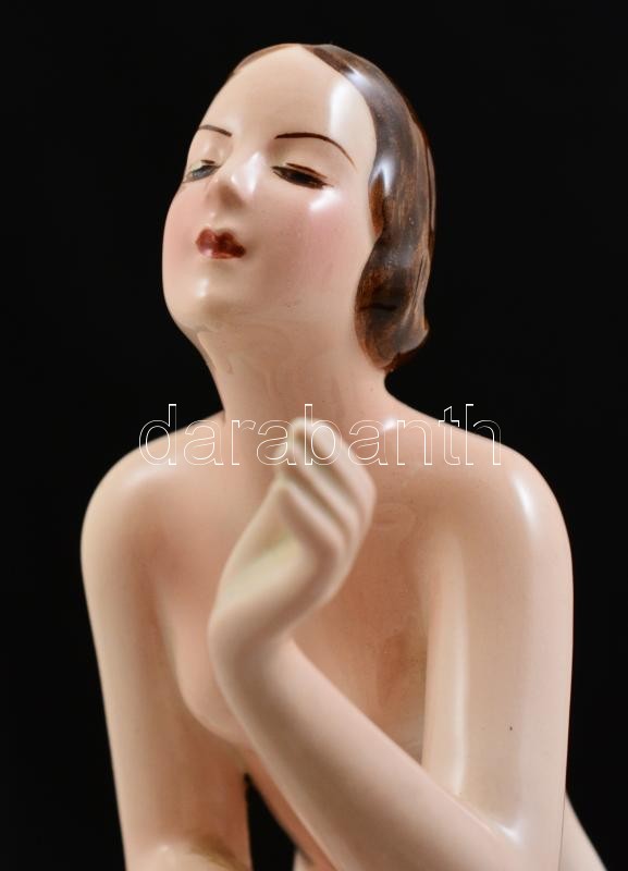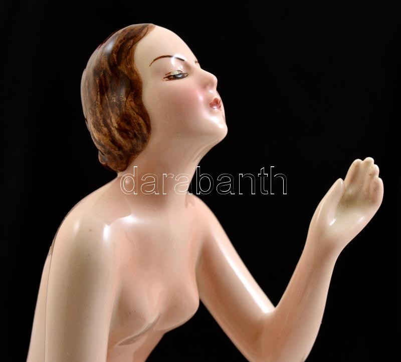 Goldscheider Wien táncoló akt, kézzel festett, jelzett, nagyon apró lepattanással, m: 27,5 cm / Dancing nude, Goldscheider Wien porcelain, handpainted, hallmarked with minor sign of use, h: 27,5 cm