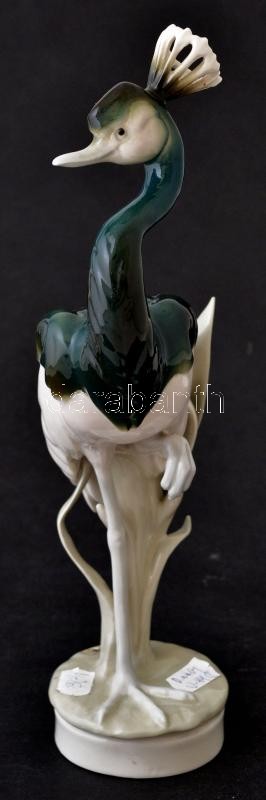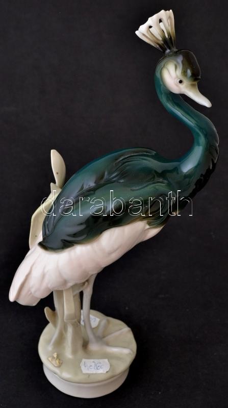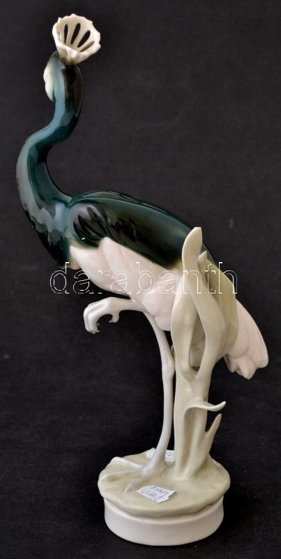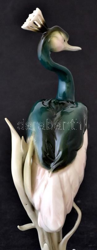Royal Dux koronás daru, kézzel festett, jelzett, hibátlan, m:33 cm / ...