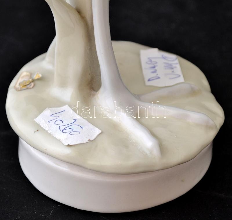 Royal Dux koronás daru, kézzel festett, jelzett, hibátlan, m:33 cm / Royal Dux hoist with crown. Hand painted, good condition