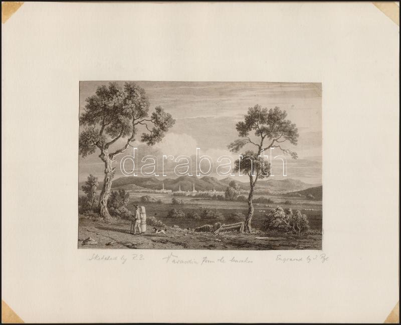1818 R(ichard) B(right) (1789-1858) -J(ohn) Pye (1782-1874): Varasdin from the Murakos, Richard Bright: Travels from Vienna through Lower Hungary, rézmetszet, papír, foltos, paszpartuban, 14x20 cm./ 1818 R(ichard) B(right) (1789-1858) -J(ohn) Pye (1782-1874): Varasdin from the Murakos, Richard Bright: Travels from Vienna through Lower Hungary, copper engraving, paper, spotty, in paspartu. 14x20 cm.