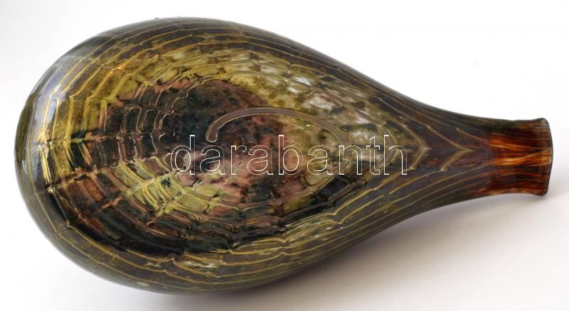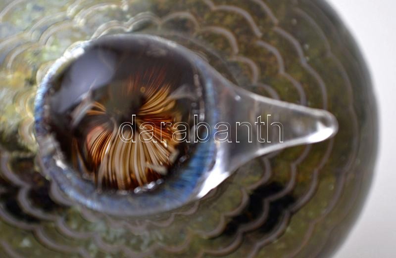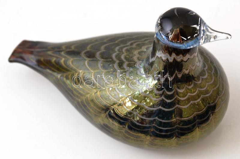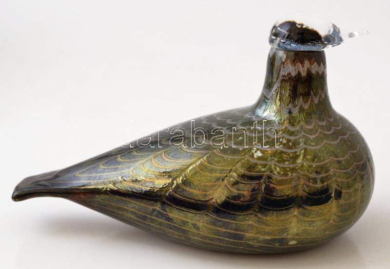 Iittala vízimadár, finn asztali üvegdísz, fújt, kézzel festett, jelzett (Oiva Toikka, Nuutajärvi), hibátlan, 10,5×17×9 cm / Iittala waterfowl, Finnish table glassware, blown glass, handpainted, hallmarked (Oiva Toikka, Nuutajärvi), in good condition, 10,5×17×9 cm
